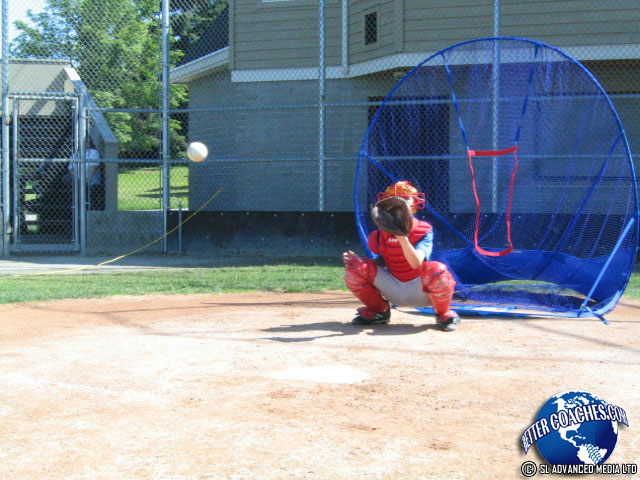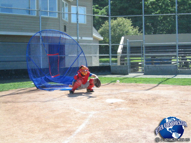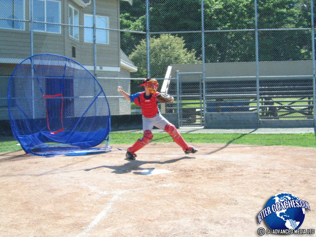 A coach can then move out 40-60 ft and throw balls into a simulated strike zone.