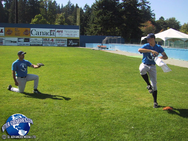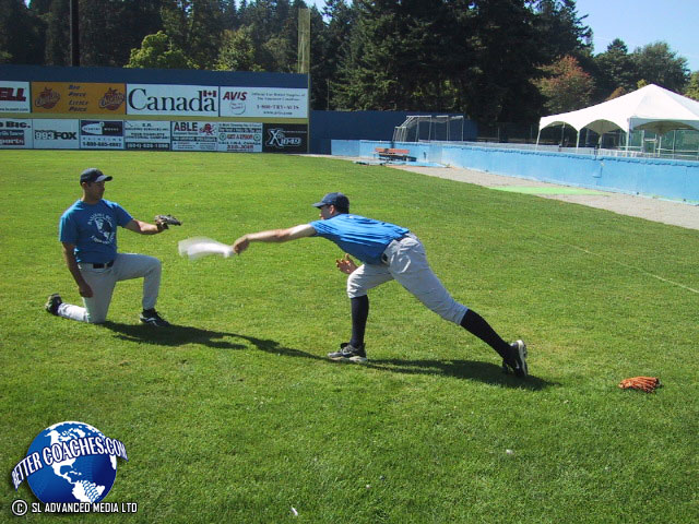 Once distance is determined, pitcher returns to starting position and coach/partner kneels down with glove in hand opposite him/her.